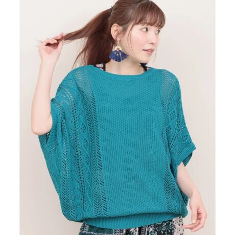 繊細な透かし編みで仕上げたドルマンスリーブニット。