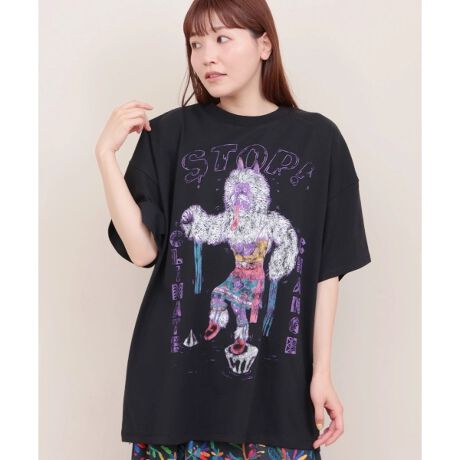 ヴィンテージ風ビッグプリントが目を惹くメッセージ入りTシャツ