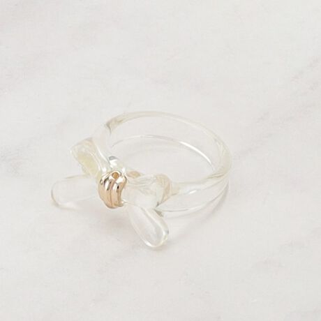 遊び心のあるクリア素材でリボンの形になっているデザインリング。