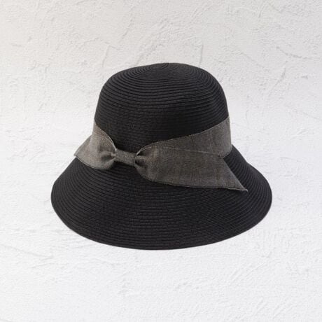 リボン裏のスナップボタンでコンパクトにたためて持ち運びにも便利なお出かけにぴったりのアイテムです。