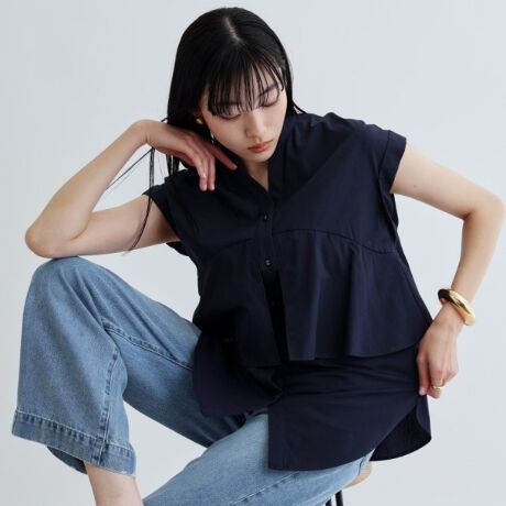 また、裾をインしてクロップド丈のペプラムブラウスとして着られる仕様。