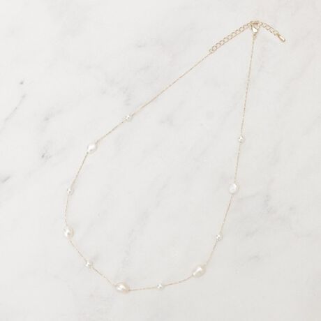 淡水パールとフェイクパールをMIXした華やかなデザインネックレス。