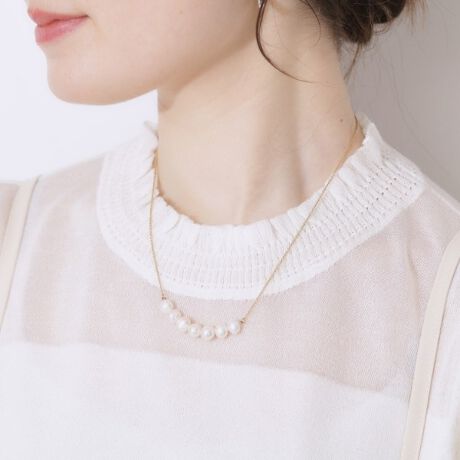 淡水パールが連なったデザインが華やかなデザインネックレス。