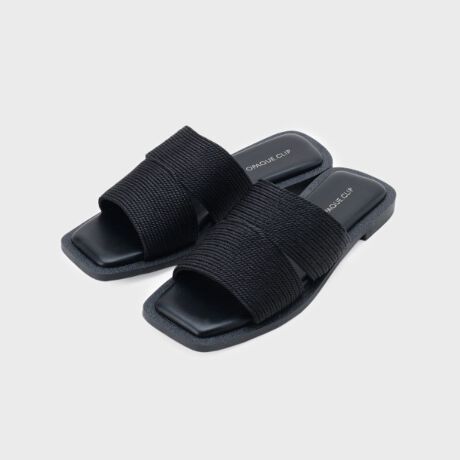 輝くメタルコードをアッパーデザインにしたフラットミュール。