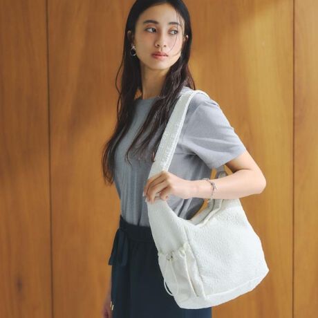 ふくれジャカードの素材使いが目を惹くショルダーバッグ。
