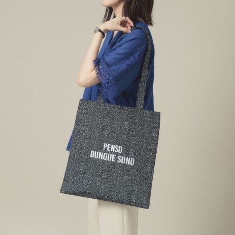リゾート感のあるモチーフプリントが特徴のプリント生地を使用したフラットトート。