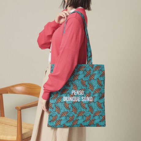 リゾート感のあるモチーフプリントが特徴のプリント生地を使用したフラットトート。