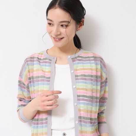 春夏らしいシアーカラフルボーダーのカーディガン。