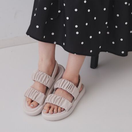 ギャザーベルト厚底フットベッドサンダル