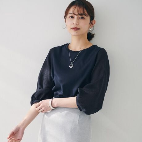 【二の腕カバーオンオフ】袖シアー ドッキングプルオーバー