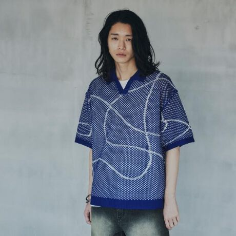 身頃全体に施されたライン柄のアートが目を惹きます。