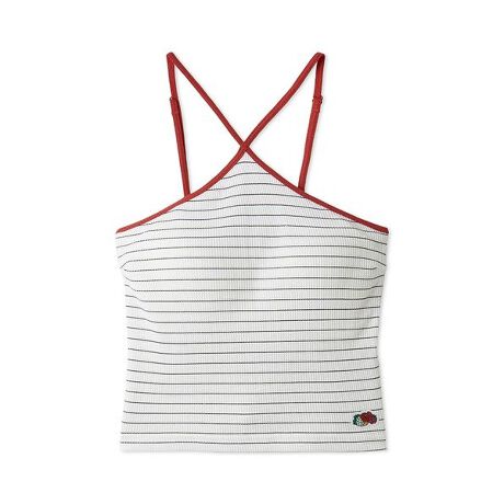 1851年創立の伝統あるベーシックアパレル/アンダーウェアメーカー『FRUIT OF THE LOOM』とのコラボレーション。定番のワッフル生地にホルターネックデザインを落とし込んだ、ヘルシーなカップ付きキャミソールの登場です。デイリーに使いやすいベーシックカラーを基調に、『FRUIT OF THE LOOM』のアイコニックなロゴと配色パイピングがアクセントとなり、特別感のあるデザインに仕上げました。無地のホワイトとブラック、ボーダーの3色展開です。