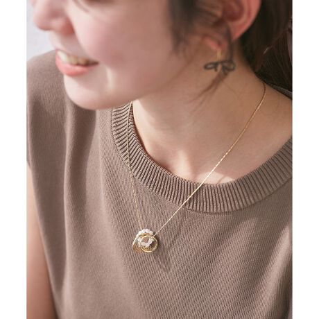 ・メタルリングとパールモチーフをかけ合わせたペンダント。