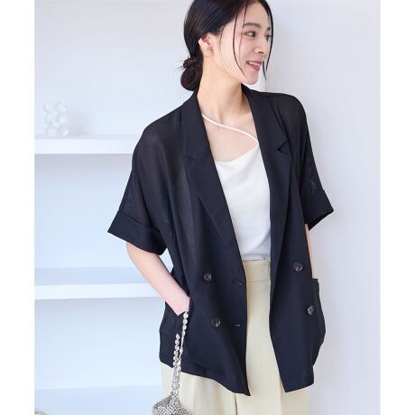 羽織感覚のゆったりシルエットのダブルブレストジャケット。