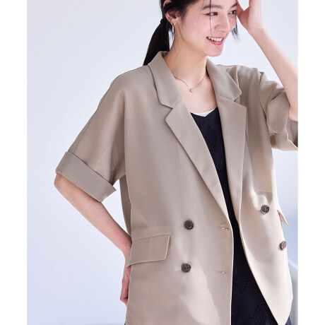 羽織感覚のゆったりシルエットのダブルブレストジャケット。