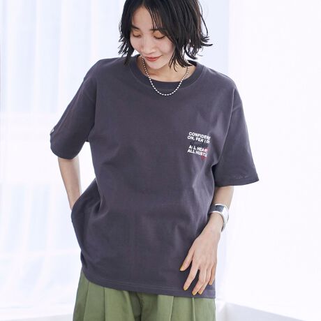 プリント×刺繍が目を引く、ハートモチーフの万能Tシャツ