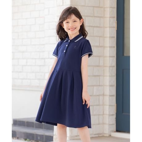 ■デザイン今期のポロワンピースはスクールガール風のデザインにしました。襟と袖口にライン使いの編立を使用し、デザインのアクセントに。スカート部分はボックスタックで、ふんわりとしたシルエットが出るようにしております。