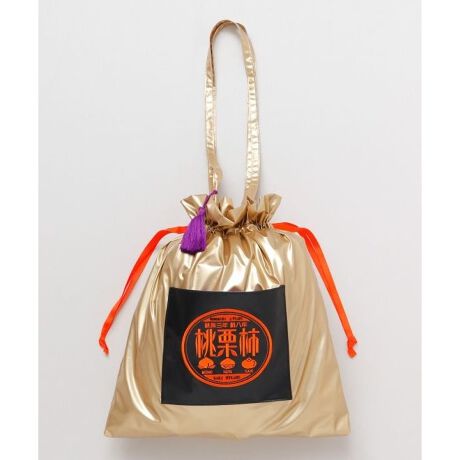 [型番:7CRP5202-2025]ことわざをイメージした刺しゅうを施した巾着バッグ。メタリック調の生地がモダンな印象。600mlのペットボトルや長財布はもちろん、A4サイズの書類等もしっかり収納出来ます。内ポケット、外ポケット付き。