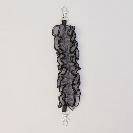チュールのフリルでボリュームたっぷりに仕上げたハンドストラップ。