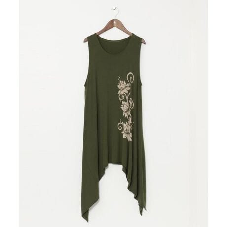 [型番:TXX-5644-2025]【タイ直輸入】前面のロータスが特徴的なロングタンクトップ。一枚でさらりと着られることはもちろん、サイドが長めなのでレイヤードがしやすい。コーディネートの幅を広げる一枚。
