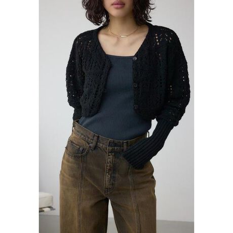 ■クロシェニットボレロ■ポイントクロシェ編みのニットボレロです。■ディティール繊細なクロシェ編みを使用した女性らしいニットボレロです。トレンドのシアー感のあるディティールがポイントです。清涼感たっぷりの柔らかいコットンタッチの素材を使用しており、クロップド丈でバランスの取りやすいシルエットです。■スタイリング透け感もあるのでインナーにカラーをさしたレイヤードも楽しめる1枚。タンクトップやキャミなどに羽織るだけで印象的なスタイルが決まります。■生地ナチュラル感のあるニット素材。透け感:あり裏 地:なし伸縮性:なし光沢感:なし[注意事項]※画像の商品はサンプルです。実際の商品と仕様、加工が若干異なる場合があります。※画像の商品は光の照射や角度、お使いのモニター環境により、実物と色味が異なる場合がございます。※着用、お取り扱いの際は、アテンションタグをご確認ください。