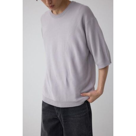 ■ベーシックガーター5分袖ニット■ポイントガーター編みでベーシックな多機能5分袖ニット。■ディティール2サイズでベーシックなシルエットです。麻タッチ素材で、強撚・ドライ・清涼・毛玉が出にくい・マシンウォッシャブル可などシンプルながら多機能で、デイリーで着やすいアイテムです。■スタイリングジーンズ合わせ、トラウザー合わせなどどんなスタイリングにも合わせやすいです。■生地アクリルの表記ではありますが、強撚の麻タッチを使用しているため、ドライ感・清涼感を表現しています。編地がガーター編みで、若干落ち感や伸縮感がでますので、長時間のハンガー掛けは襟元などが伸びやすくなりますのでご注意ください。透け感:なし裏 地:なし伸縮性:ややあり(編み柄設定要因)光沢感:なし※マシンウォッシャブル可能です。[注意事項]※画像の商品はサンプルです。実際の商品と仕様、加工が若干異なる場合があります。※画像の商品は光の照射や角度、お使いのモニター環境により、実物と色味が異なる場合がございます。※着用、お取り扱いの際は、アテンションタグをご確認ください。