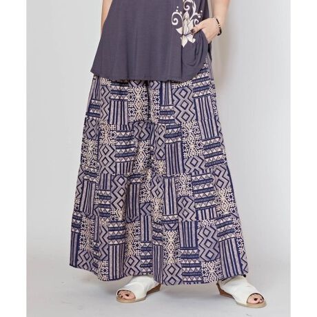 [型番:TXX-5632-2025]【タイ直輸入】肌ざわりの良い、張りのある生地感のフレアパンツ。裾に切り替えがあることで形が崩れにくく、ふんわりとしたシルエットになるのも魅力的。
