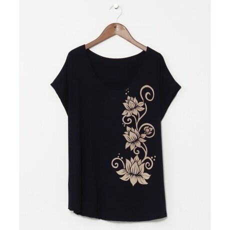 [型番:TXX-5629-2025]【タイ直輸入】前面のロータスが特徴的なTシャツ。首元が広めの作りになっており、ストレスフリーに着られる。さらりとした生地感で毎日着たいと思える一枚。