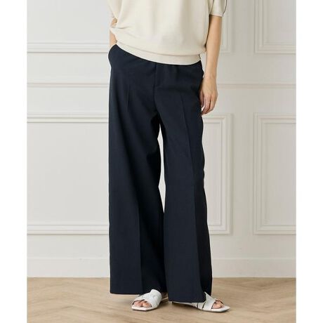 ■デザイン人気の美脚ワイドパンツと同じパターンを採用し、より腰高なスタイルを狙ったワイドパンツ。リラックス感のあるセミワイドシルエットをハイウエスト位置で引き締めることですっきりとした印象に。ウエストは後ろゴム仕様にしており、楽な穿き心地も魅力です。タイトなトップスはもちろん、ブラウスをタックインした着こなしやオーバーサイズのニットなどを合わせたこなれ感のある着こなしもおすすめ。足元はパンプスからサンダルまでどんなシューズともバランス良く合わせていただけます。スタイリング次第でオンオフ問わず幅広く活躍してくれる万能なアイテムです。■素材中肉のリネンオックスのような天然タッチが特徴の綿麻ポリエステル三者混素材です。特殊凹凸構造のポリエステル糸を使用しているため非常に麻ライクな仕上がりです。風合いだけでなく、ビジュアル面でもリネンのような複雑な色合いが再現され、風合いに奥行きとクラス感をもたらしています。サマーシーズンにうれしい機能(UVカットや接触冷感、吸水速乾)に加え、リネン100%ではできない防シワ性もあるマルチ素材です。・裏地なし・ポケットあり・ウエスト後ろゴム仕様・水洗い可セットアップで着られるノーカラージャケット品番:7152141016セットアップで着られるハーフスリーブジャケット品番:7152141017