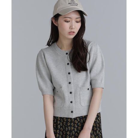 袖に目立てを入れてふんわりとさせたフォルムと、フロントのミニポケットがポイントの半袖カーディガン。すっきりとした印象の程よくコンパクトなサイズ感で、羽織にもボタンを留めてトップス風にも着こなせます。ざっくりとした表面感のある編地なので体のラインを拾いにくく、編地がしっかりしているのでダレにくさも◎。デニムパンツ・ボリュームのあるボトムスなど、シンプルなデザインなので幅広いコーディネートに活躍。トレンドのチノショートパンツと合わせて、トレンドライクな着こなしもおススメです。※モデルの着用画像の場合、光の当たり具合により、実際の色味と異なって見えることがございます。色味は、商品単体の画像をご参照ください。