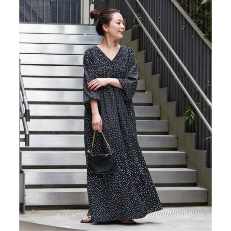 マルイウェブチャネル   /   ベーセーストック   /   ワンピースドレス   /   ワンピース   /   ウォッシャブル / ドット無地Vネックワンピース