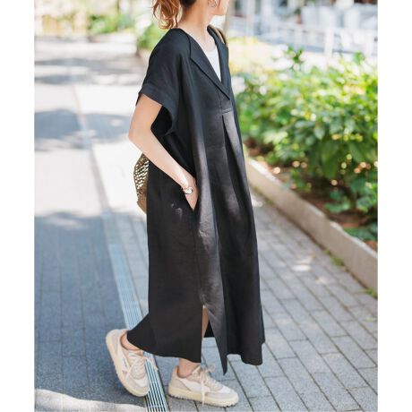 これからの季節サクッと着られる便利なリネンのカフタンドレス。