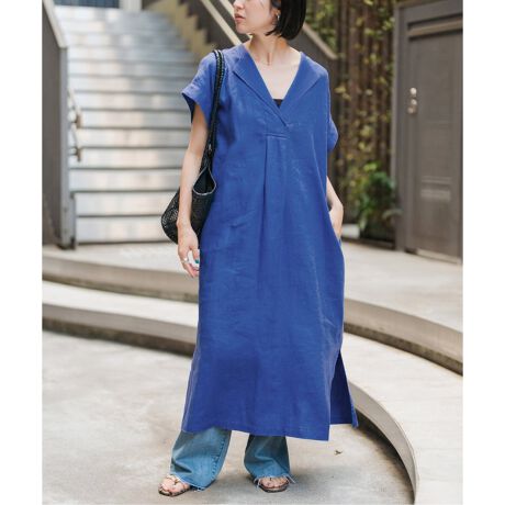 これからの季節サクッと着られる便利なリネンのカフタンドレス。