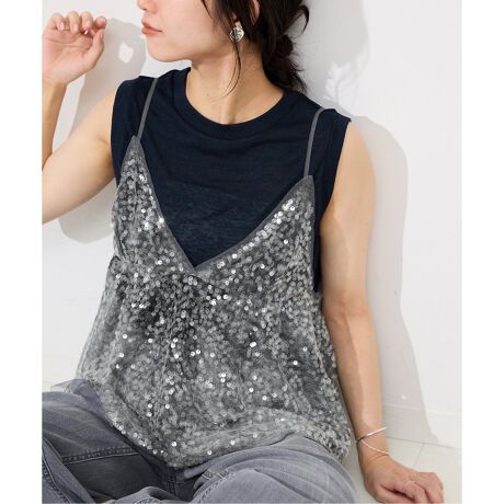・クリアのスパンコールが施された、キャッチーなチュール生地のキャミブラウスが登場!