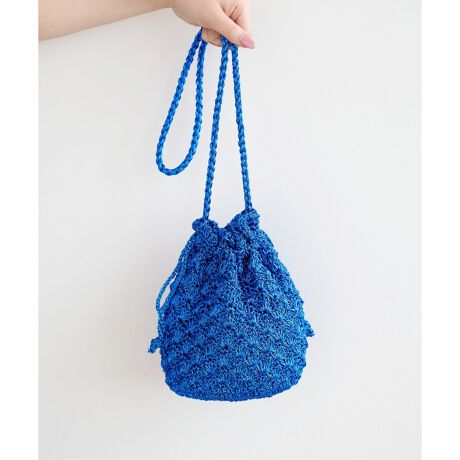 メタリック糸で手編み込んだ、キラキラ感が可愛らしいアイテムです。巾着タイプの小さいながらも小物が収まる大きさで、スタイリングのアクセントになります。