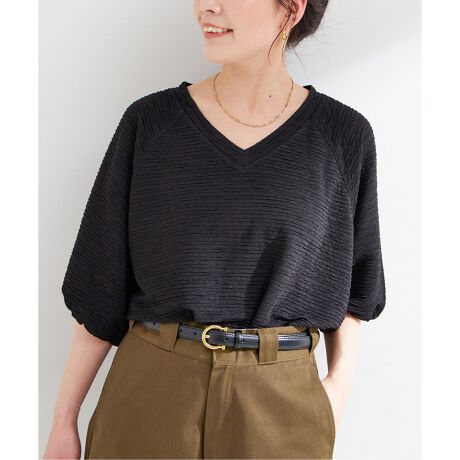 ウォッシャブル / PEフクレジャカードVネックTEE