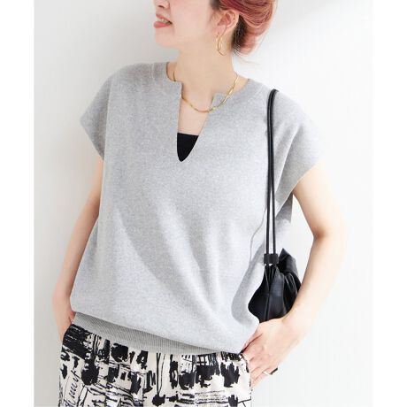 体のラインを拾いにくいほどよい肉感で、少し肩のラインを下げているので一枚で着ていただけるようデザインしています。パンツスタイリングはもちろん、この夏はボリュームシルエットのロングスカートなどと合わせ大人っぽくスタイリングするのが素敵です。