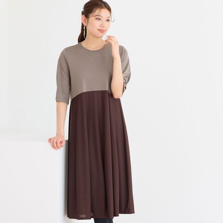 【洗える・接触冷感・一部店舗限定】異素材フレアワンピース