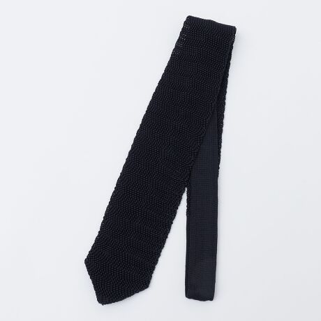 ニットタイはドライな印象になりがちですが、シルク特有の上品な艶も感じられる一本です。