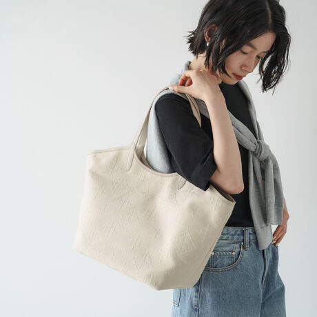 A4ファイルも収納できる大容量ながら、無駄のないすっきりとしたシルエットで、大人の女性らしい上品さを演出します。
