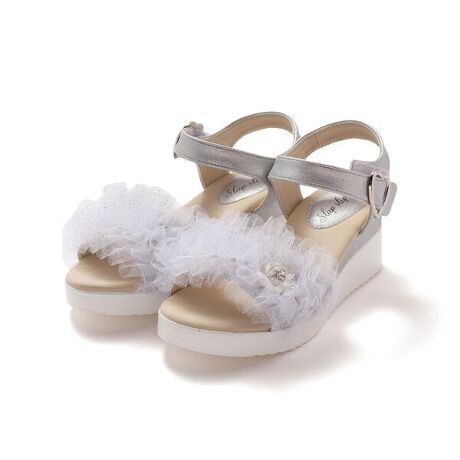 キラキラくしゅくしゅチュールお花モチーフ付きウェッジソールサンダル(16~21cm)