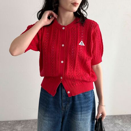 ・編み目が可愛いGEVACOの半袖カーディガンです
