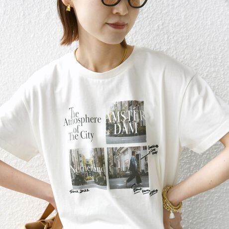 プリントの一部に刺繍を施した、今年らしいデザインのフォトTシャツ。