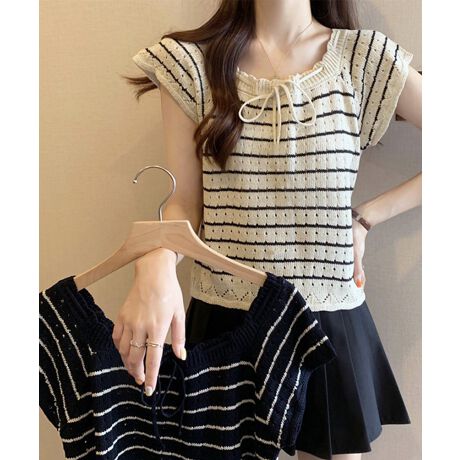 ラブリーな雰囲気のパンチングデザインが魅力のサマーニットトップス