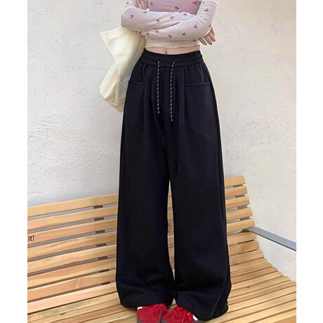 リラックス感のあるワイドシルエットと、ウエストのドローストリングデザインが特徴のカジュアルボトムス