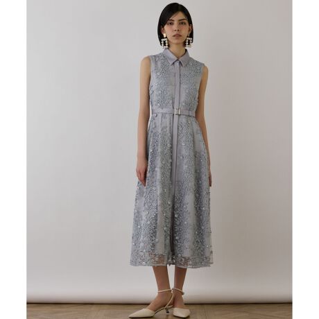 フラワーライン刺繍ワンピース