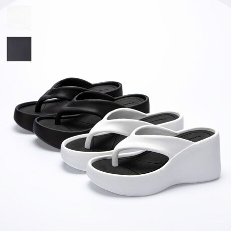 ふわっと足元を包み込む厚底のトングサンダル。<br>