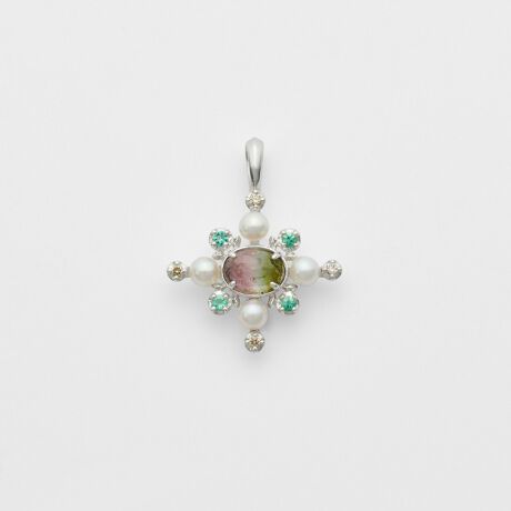 4月、5月、6月、10月の誕生石を取り入れたネックレスチャーム。ヴィンテージのブローチを思わせるデザインながら、淡くナチュラルな石の表情がアガットらしい魅力を引き立てます。洗練されたデザインをシルバーでカジュアルに仕上げた、上品な一品です。※天然石や天然素材を使用しているものは、サイズ・色味・風合いの違いや、若干の傷、内包物の有無などに個体差があります。予めご了承ください。※パールは、のり留め(芯立て)ですので水分にはご注意下さい。