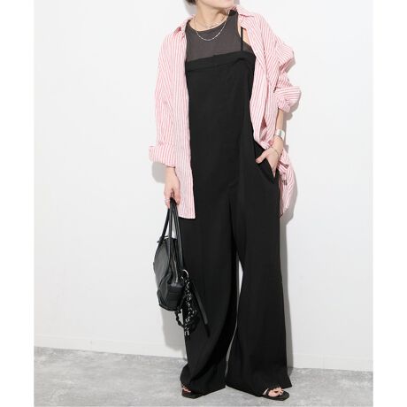 上品で清涼感があるアイアス素材のサロペット。