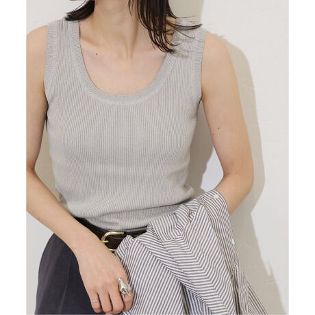 ニット素材のタンクトップでミニマルなデザインなのでカジュアルにもキレイめにも対応。